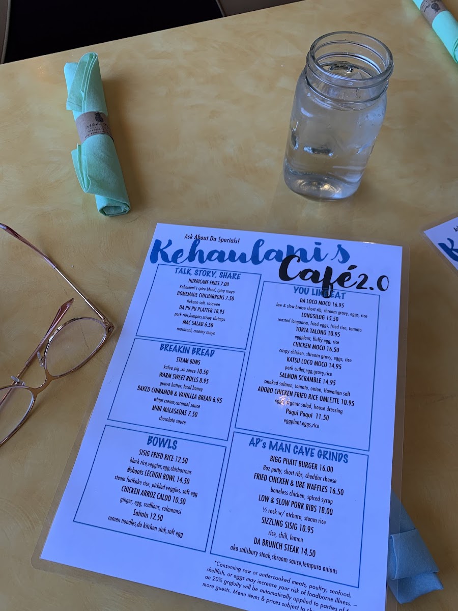 Kehaulani’s Cafe Menu
